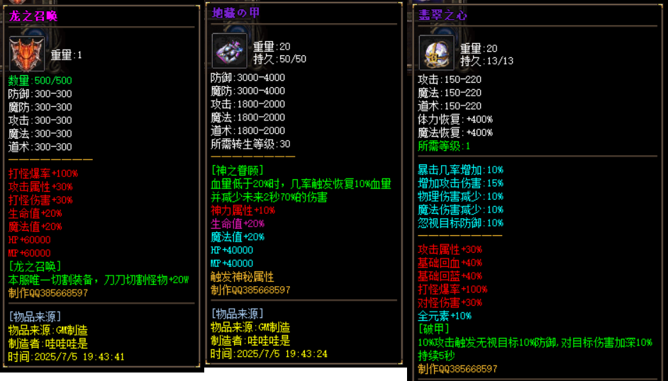 1。新增加最新专属装备 N 件 (超多BUFF新装备等你来拿) |